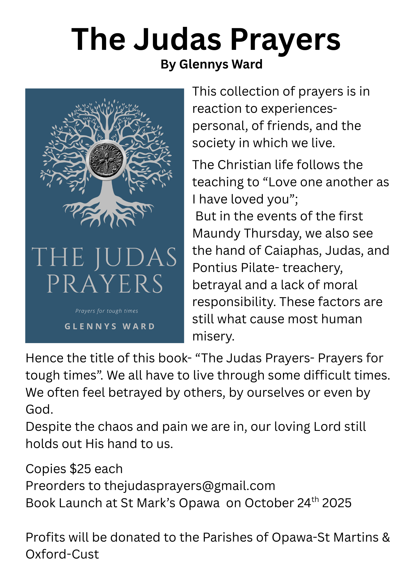 Here is the pewsheet for the week. You will also see attached a flyer for a new book of prayers written by our very own Glenys Ward. Congratulations, Glenys, and thank you for showing us how to turn life's hard moments into beauty that honours God.